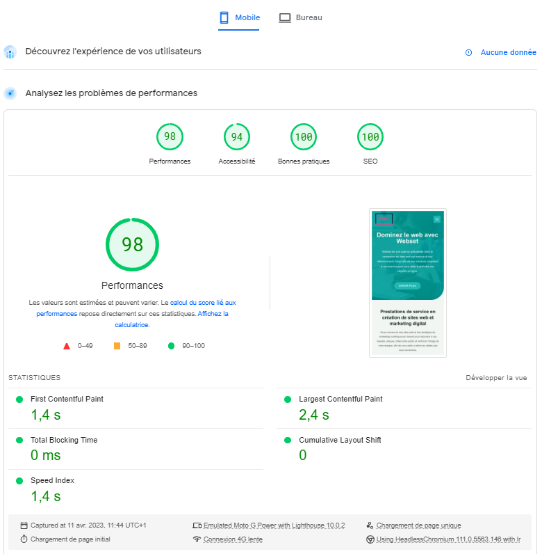 En outre, Google tient compte de la vitesse de chargement des pages dans ses algorithmes de référencement. Ainsi, un site web qui se charge rapidement peut être mieux référencé qu’un autre qui se charge lentement. En optimisant la performance et la vitesse de votre site web, vous pouvez donc améliorer votre positionnement dans les résultats de recherche de Google, ce qui peut augmenter le trafic sur votre site et améliorer votre visibilité en ligne. En résumé, tester la performance et la vitesse de votre site web avec Google PageSpeed Insights peut mettre en valeur votre site et améliorer votre référencement naturel, ce qui peut avoir un impact positif sur votre entreprise ou organisation en ligne.